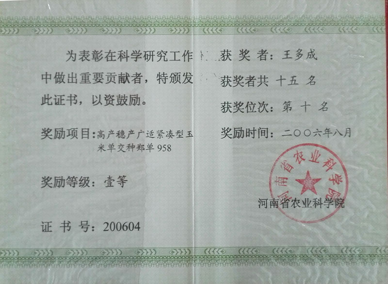 2006年榮獲河南省科學(xué)技術(shù)進(jìn)步獎